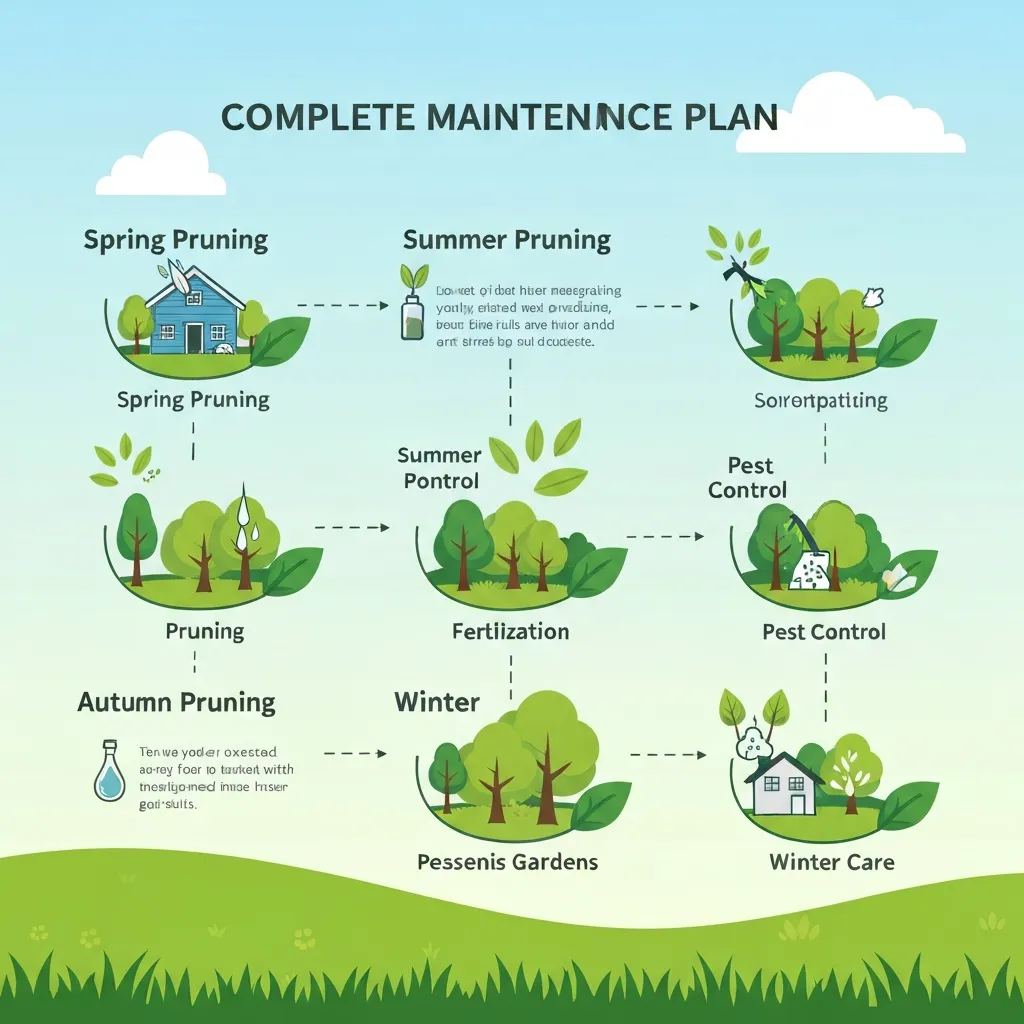 Perfect for homeowners seeking basic seasonal maintenance. Includes spring and fall pruning, health assessment, and seasonal recommendations. Ideal for properties with established landscapes.